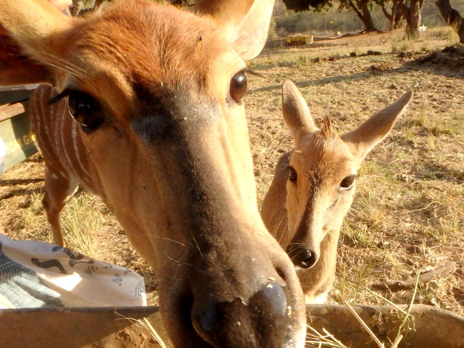 1600h |  Feed the nyala and duiker.  The females are nosy yet timid, and the handful of males are not to be approached under any circumstance – they will mess you up.